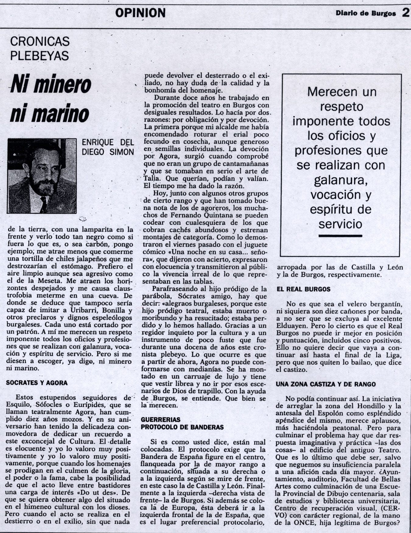 Diario de Burgos, CRONICAS PLEBEYAS, Enrique Del Diego