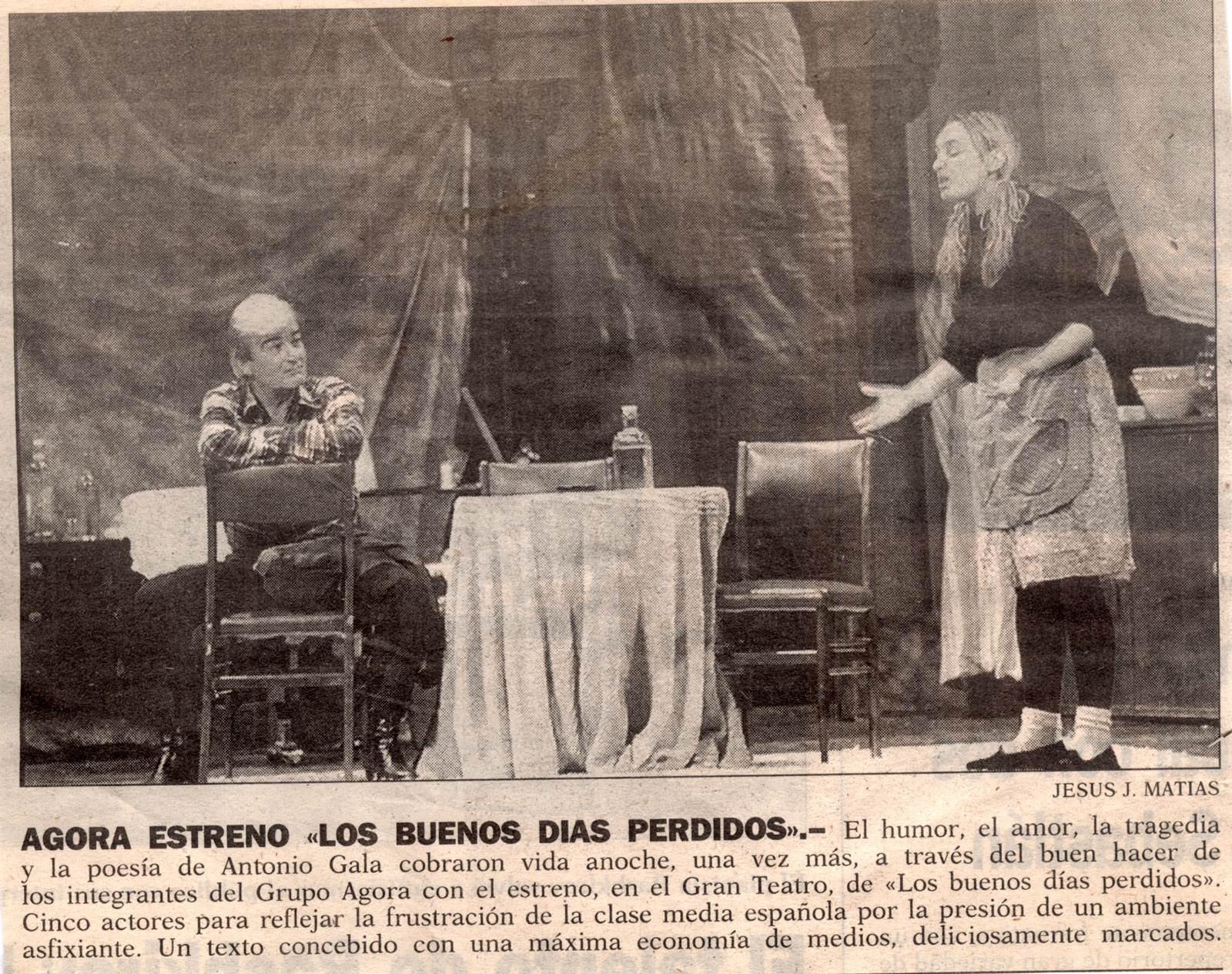S. I BAÑEZ. -Agora Teatro Independiente estrena a las ocho y media de la tarde, en el Gran Teatro, «Los buenos días perdidos» del dramaturgo tantas veces aplaudido, discutido, y en ocasiones fuertemente vapuleado Antonio Gala.
