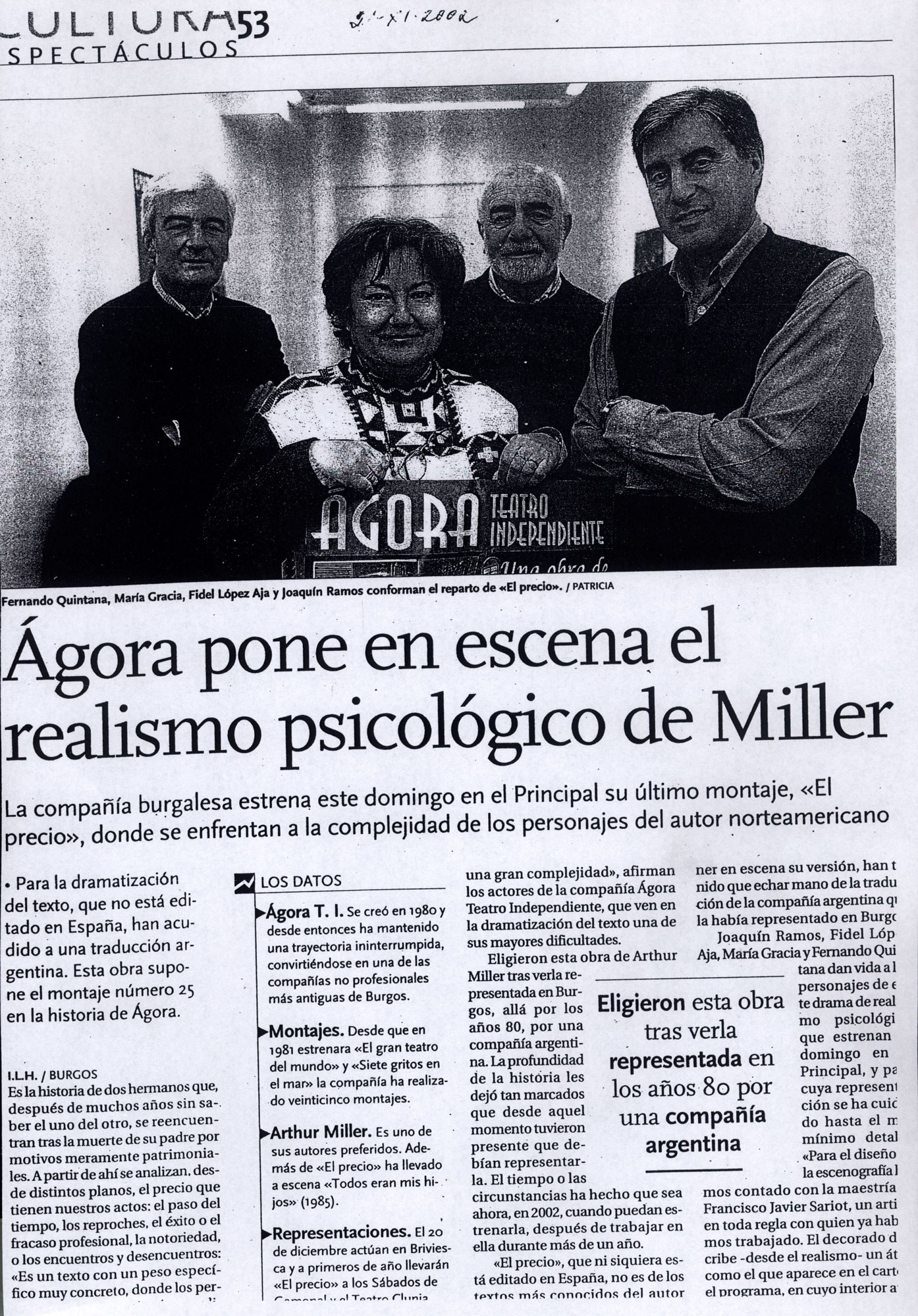 «El precio», que ni siquiera está editado en España, no es de los textos más conocidos del autor [...] ner en escena su versión, han tenido que echar mano de la traducción de la compañía argentina que la había representado en Burgos.