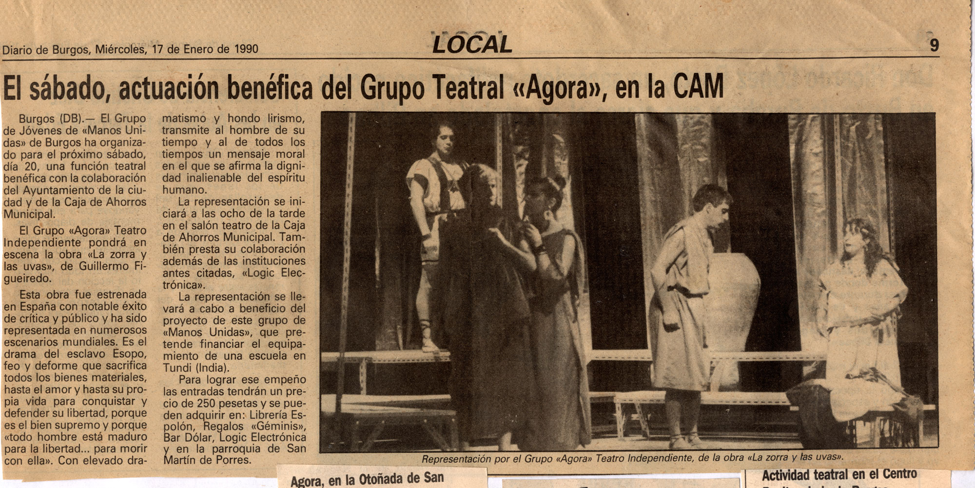 El sábado, actuación benéfica del Grupo Teatral «Agora», en la CAM