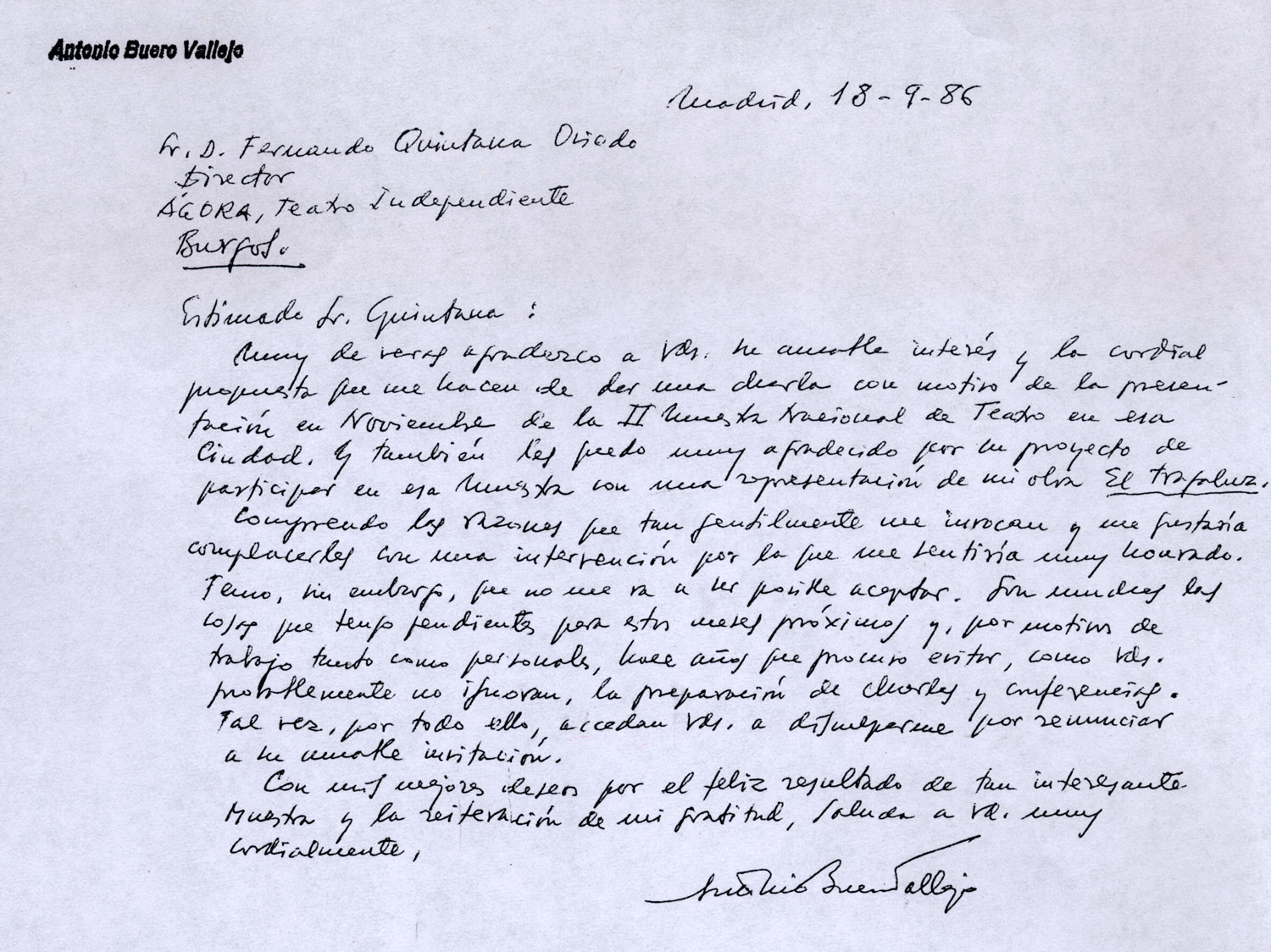 Representaciones - 1986 - El Tragaluz